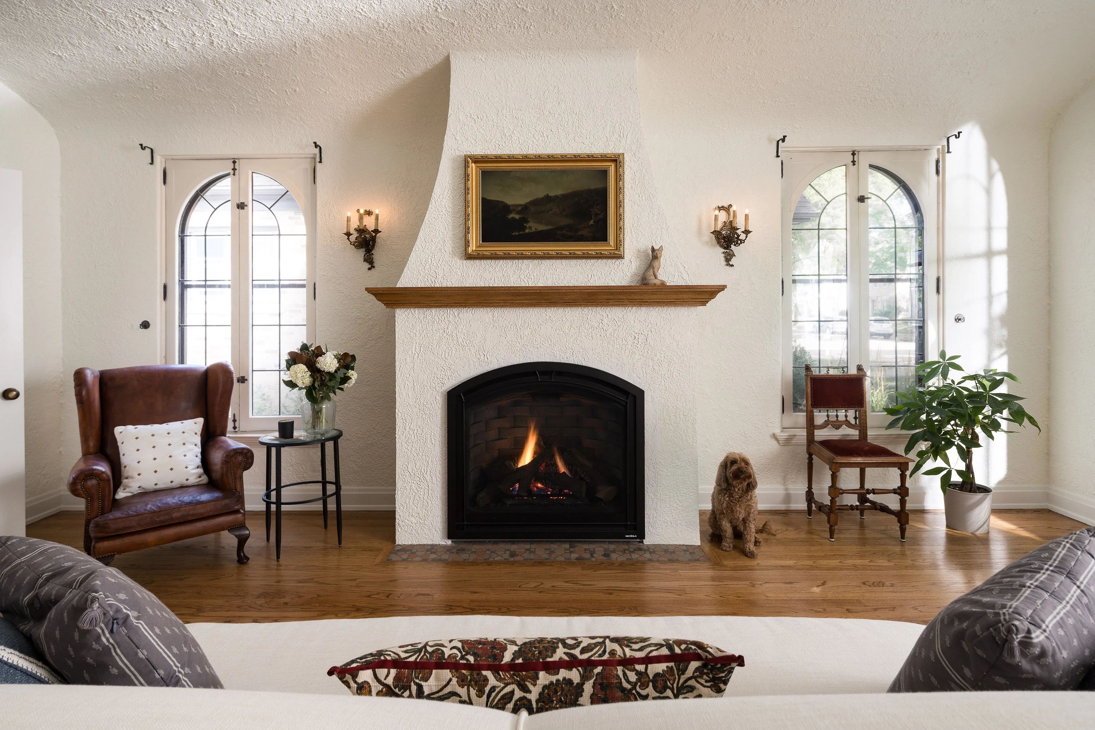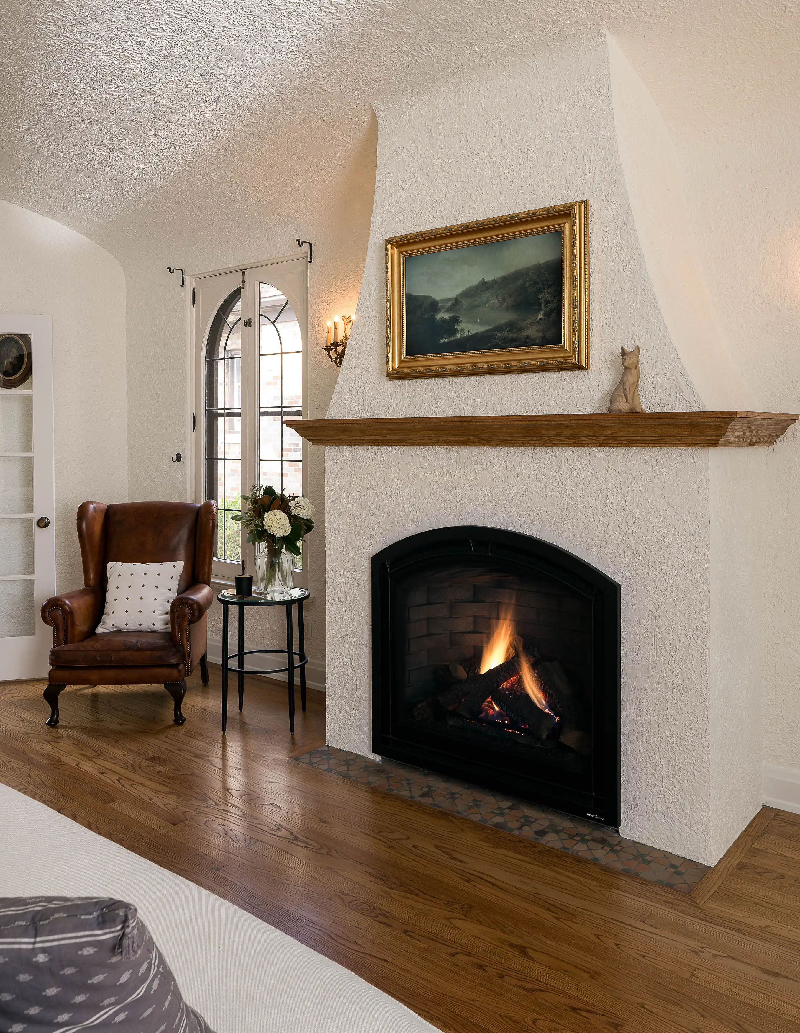 Thoughtful planning allowed this project to preserve the home’s charm while introducing modern functionality. The team uncovered original tile on the fireplace, carefully protecting and integrating it into the new design. Antique sconces were refitted with custom electrical components, preserving their vintage beauty while making them practical for everyday use.